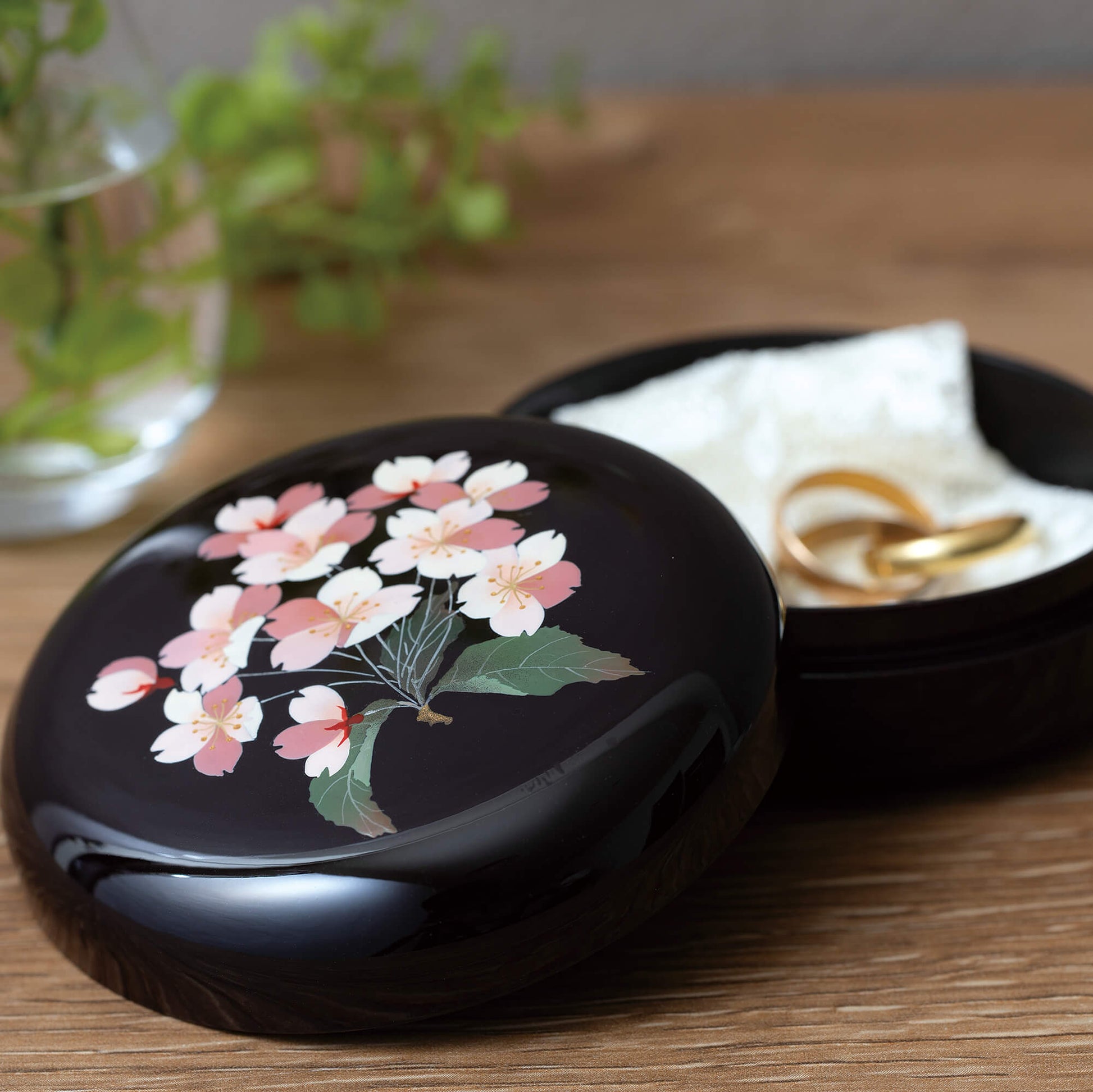 La base è di un tenue marrone rossiccio ed è interamente decorata con maki-e rosa. Il delicato fiore rosa significa "amore puro". Un capolavoro che trasmette sentimenti sinceri.