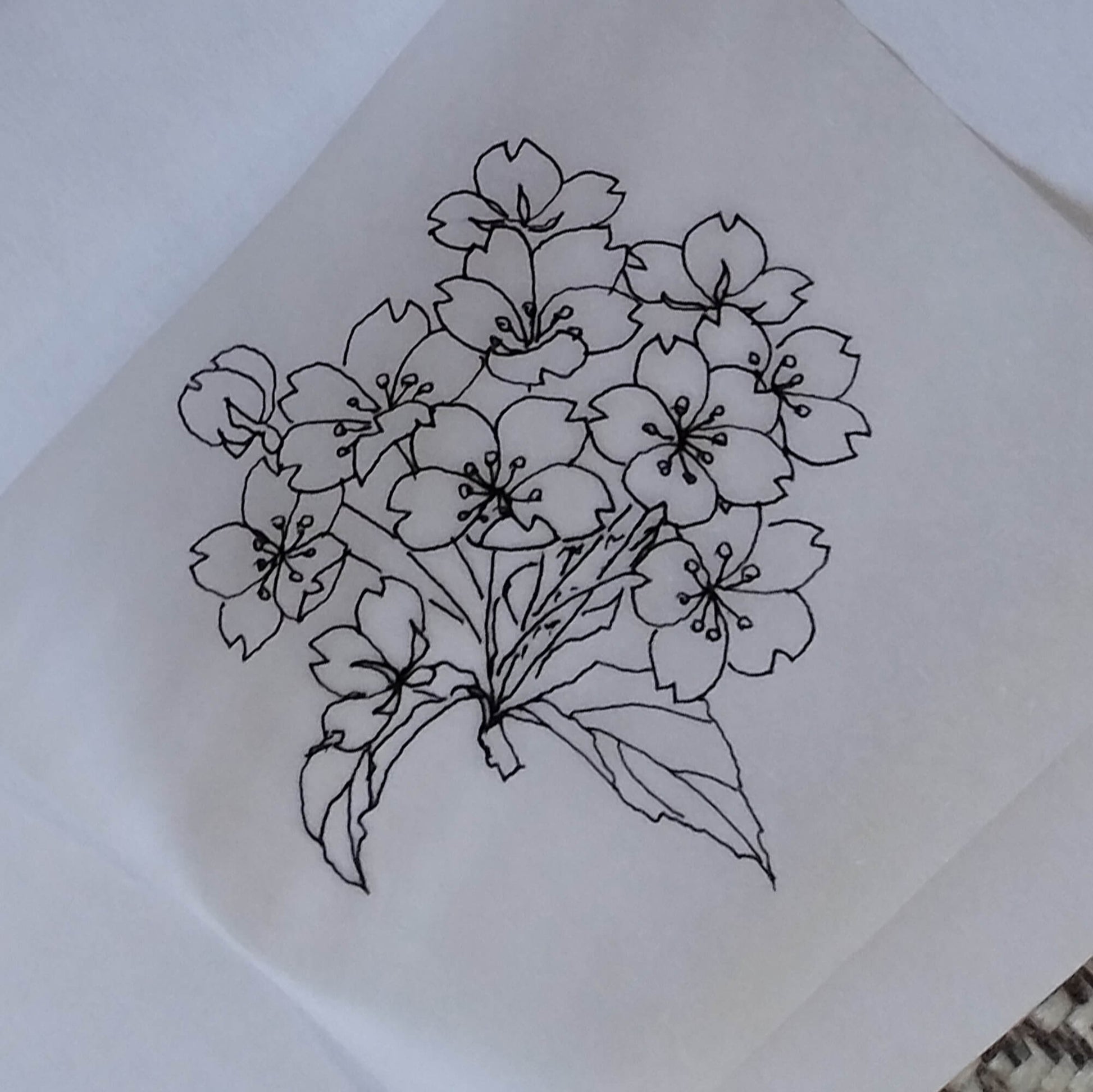 Il motivo a fiori di ciliegio è realizzato in grigio chiaro su sfondo nero. Il colore greige gli conferisce un aspetto sofisticato ma non eccessivamente grazioso, rendendolo un pezzo molto elegante.