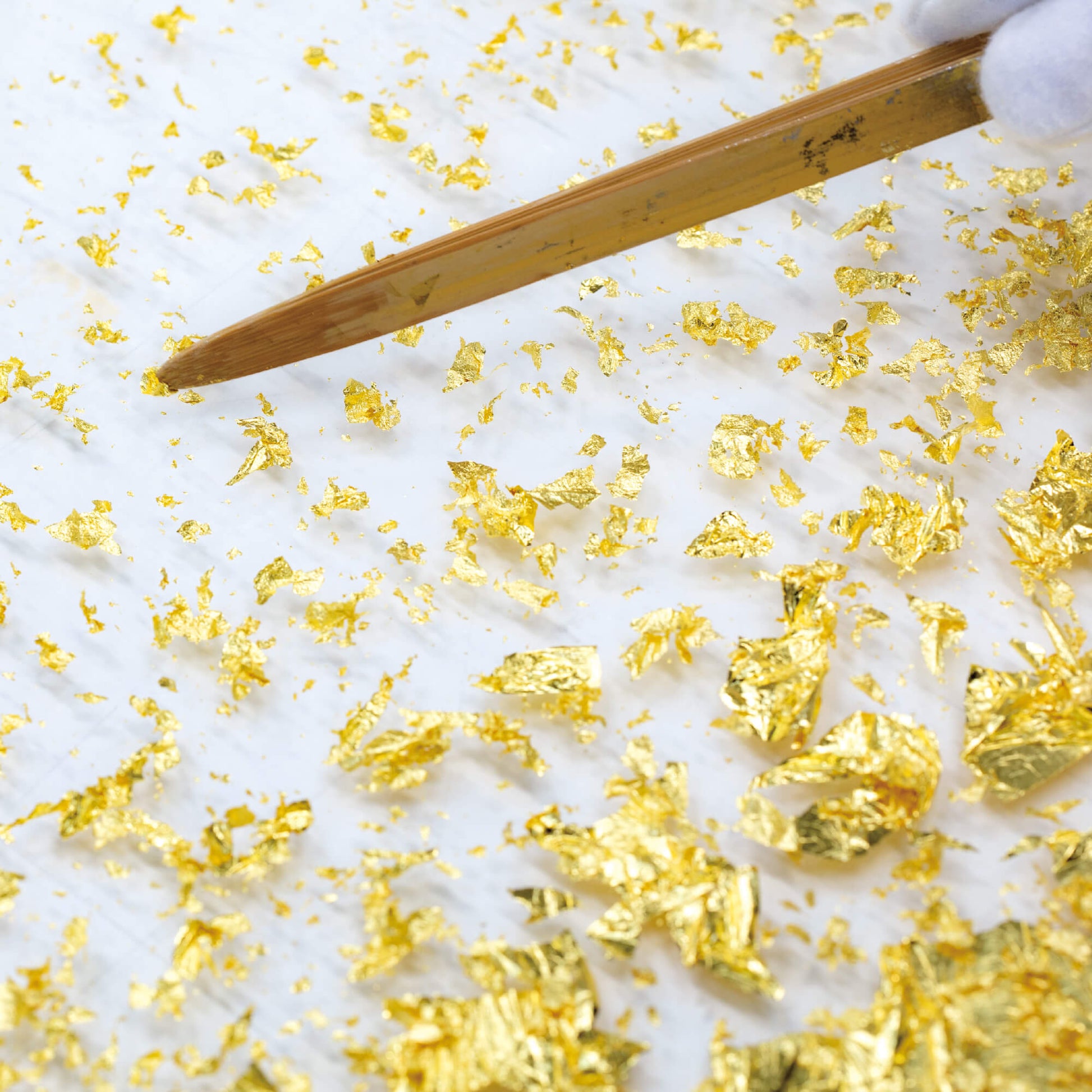 La foglia d'oro Kanazawa è una foglia d'oro tradizionale prodotta nella città di Kanazawa, nella prefettura di Ishikawa, e rappresenta circa il 99% della produzione di foglia d'oro in Giappone. Con oltre 400 anni di storia e una lavorazione artigianale all'avanguardia, è rifinita con uno spessore estremamente sottile di appena 1/10.000 di millimetro ed è nota per la sua splendida lucentezza e l'alta qualità. È ampiamente utilizzata non solo per decorare templi e santuari, ma anche in artigianato, cosmetici, cibo e altro ancora.