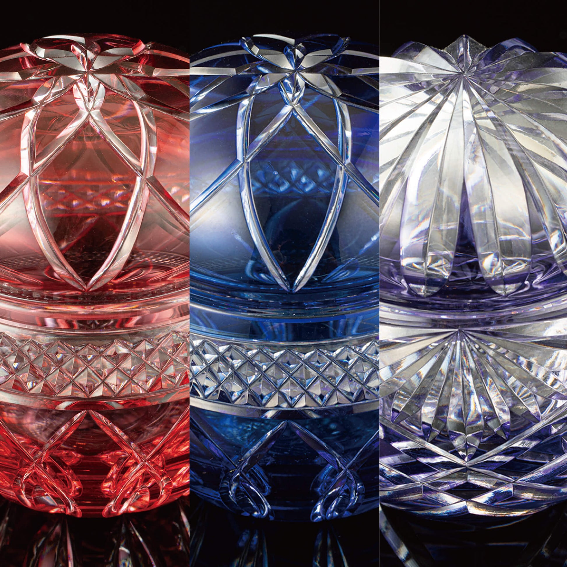 1934年、日本初のクリスタルガラス専門工場として、各務鑛三によって創立されました。宮内庁御用品として納入実績もございます。その彫りの深さ、精密さ、デザインの格調の高さから、国内外で高い評価を受けています。