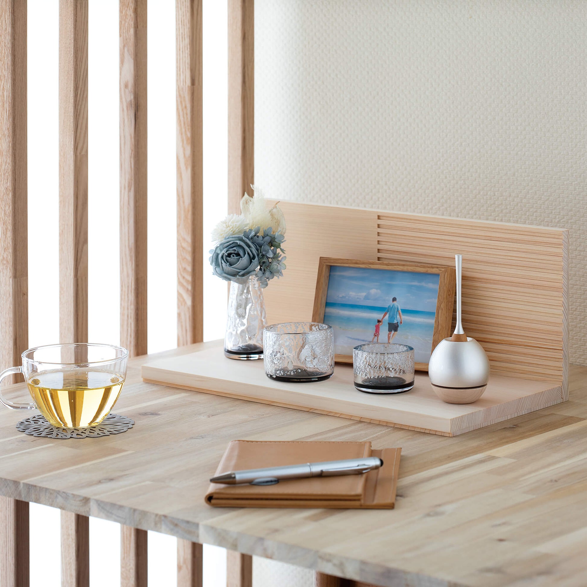 ↑お位牌やミニ骨壷などを自由に配置できる、コンパクトながらもゆとりを備えたスペースです。