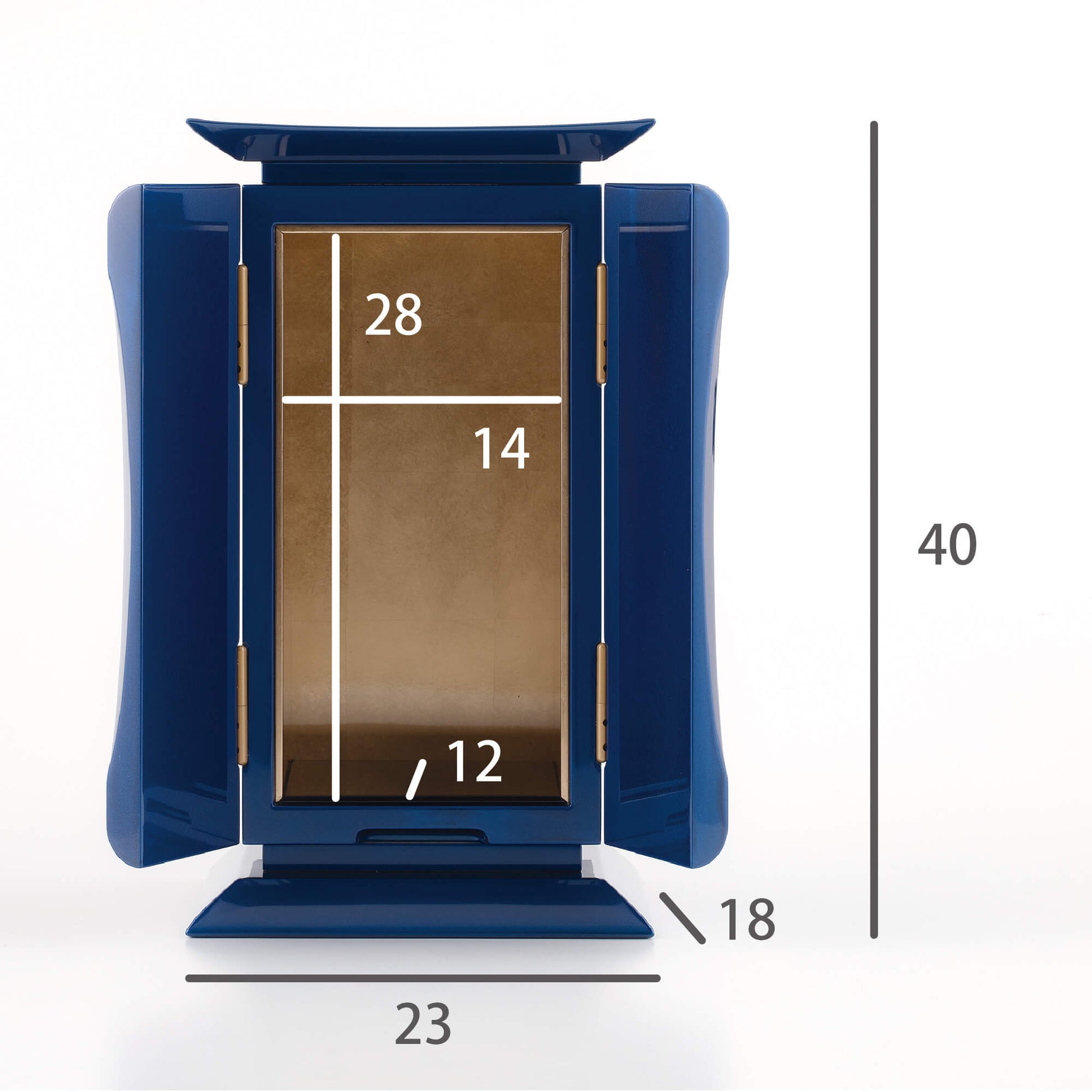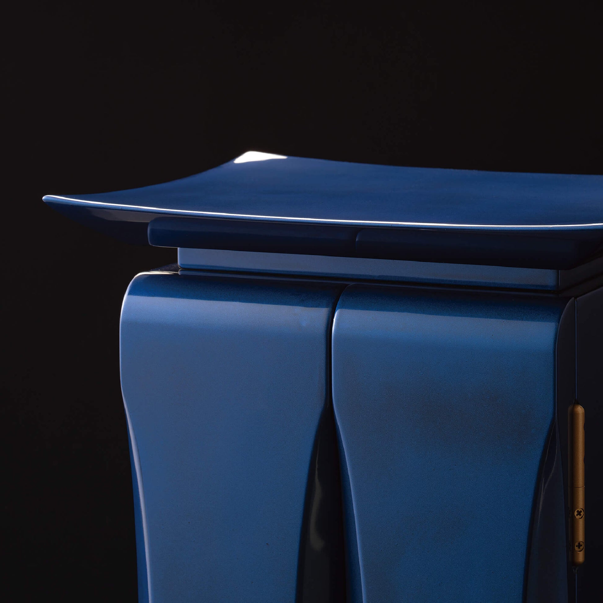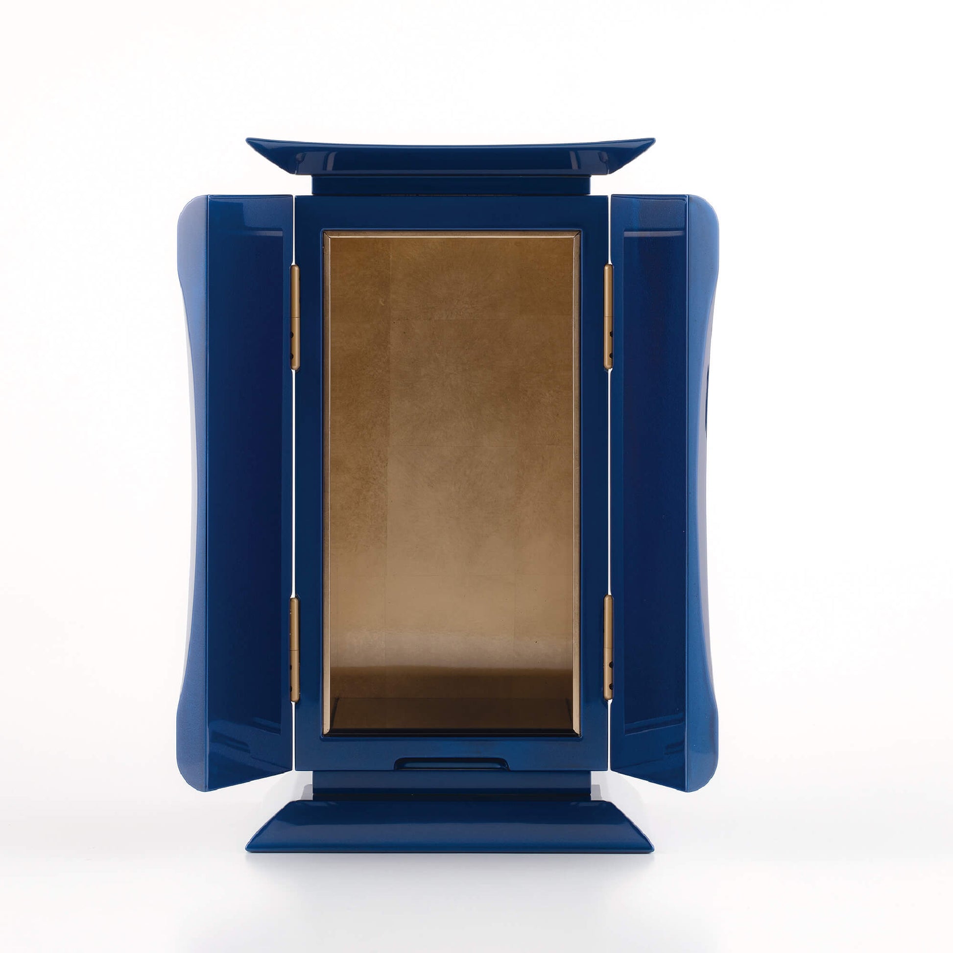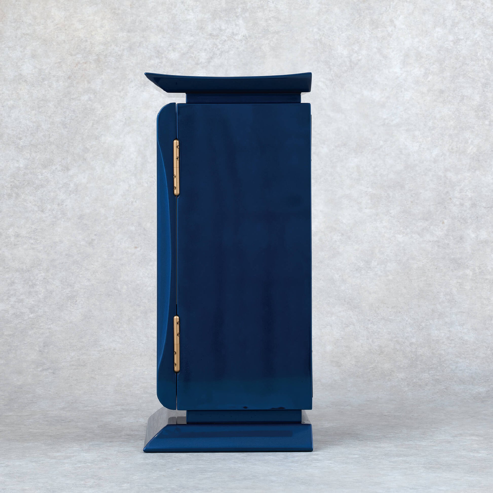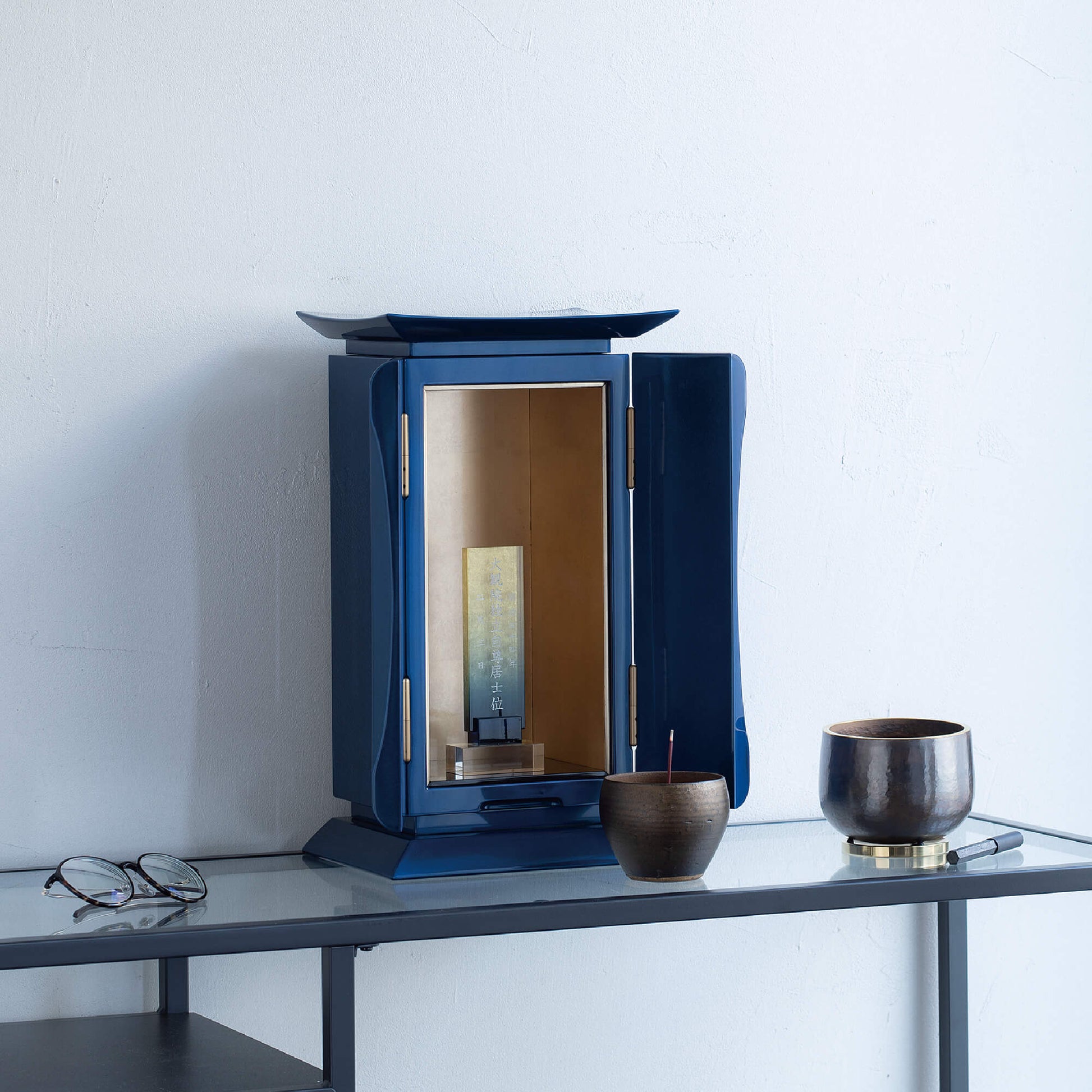 濃青は、仏教において智慧を象徴し、大いなる空「虚空(こくう)」を意味します。仏の慈悲がどこまでも広がるように、青漆の厨子は空へと続く道を表し、心を解き放ち、高みへと導いてくれます。