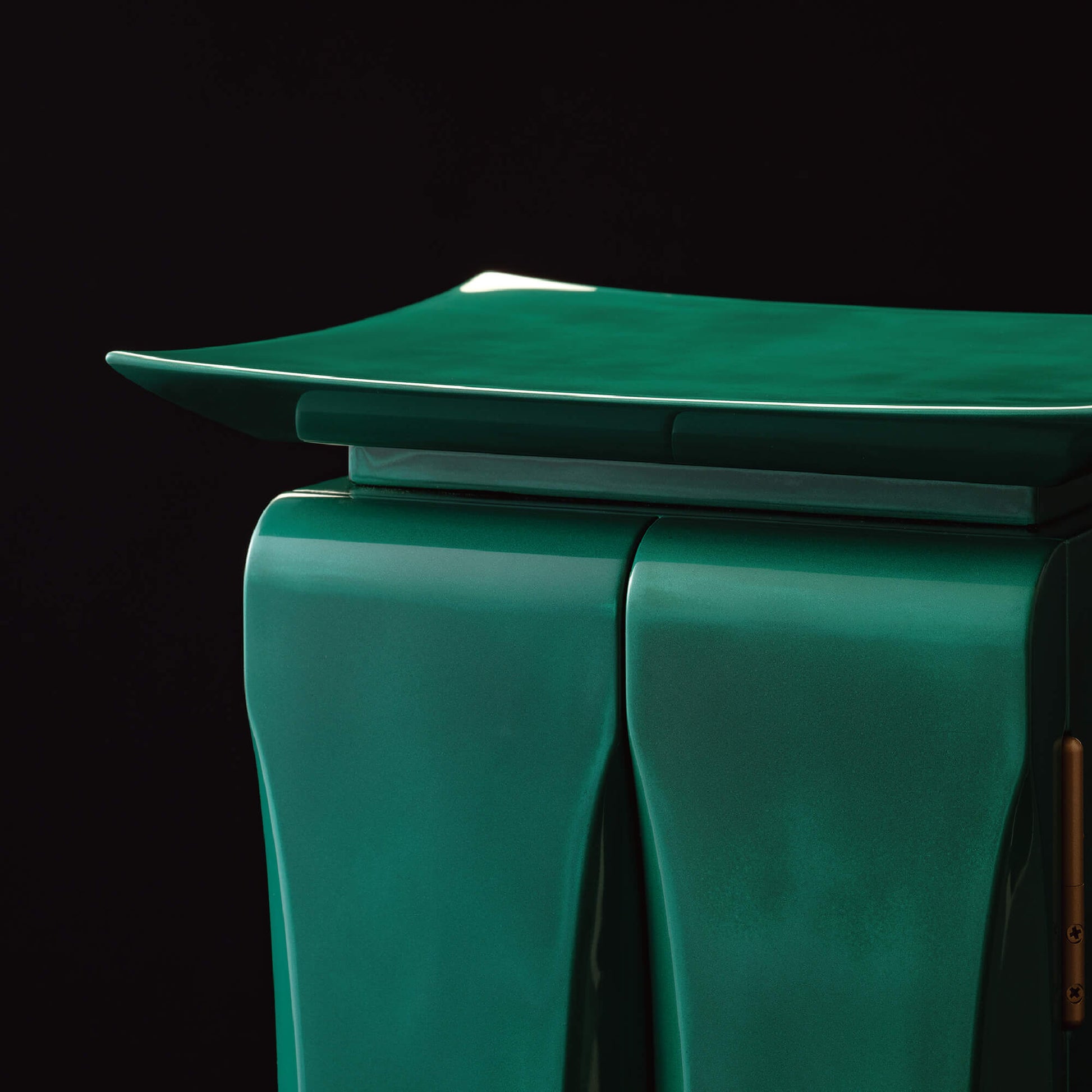 扉は、柔らかな曲面が光を受けて美しい陰影を描き出し、熟練の職人が一切の妥協なく仕立て上げた、精緻なる手仕事の結晶です。
