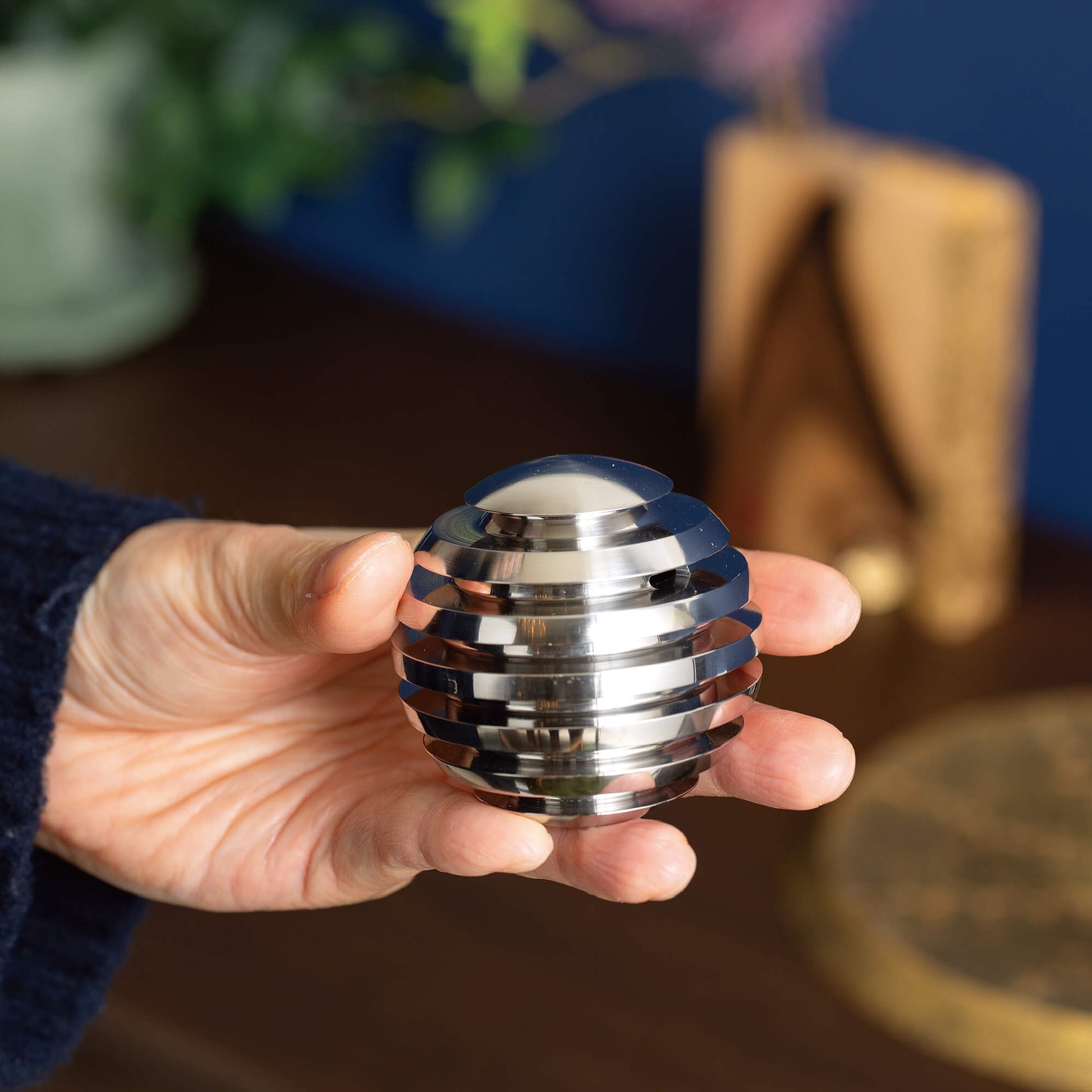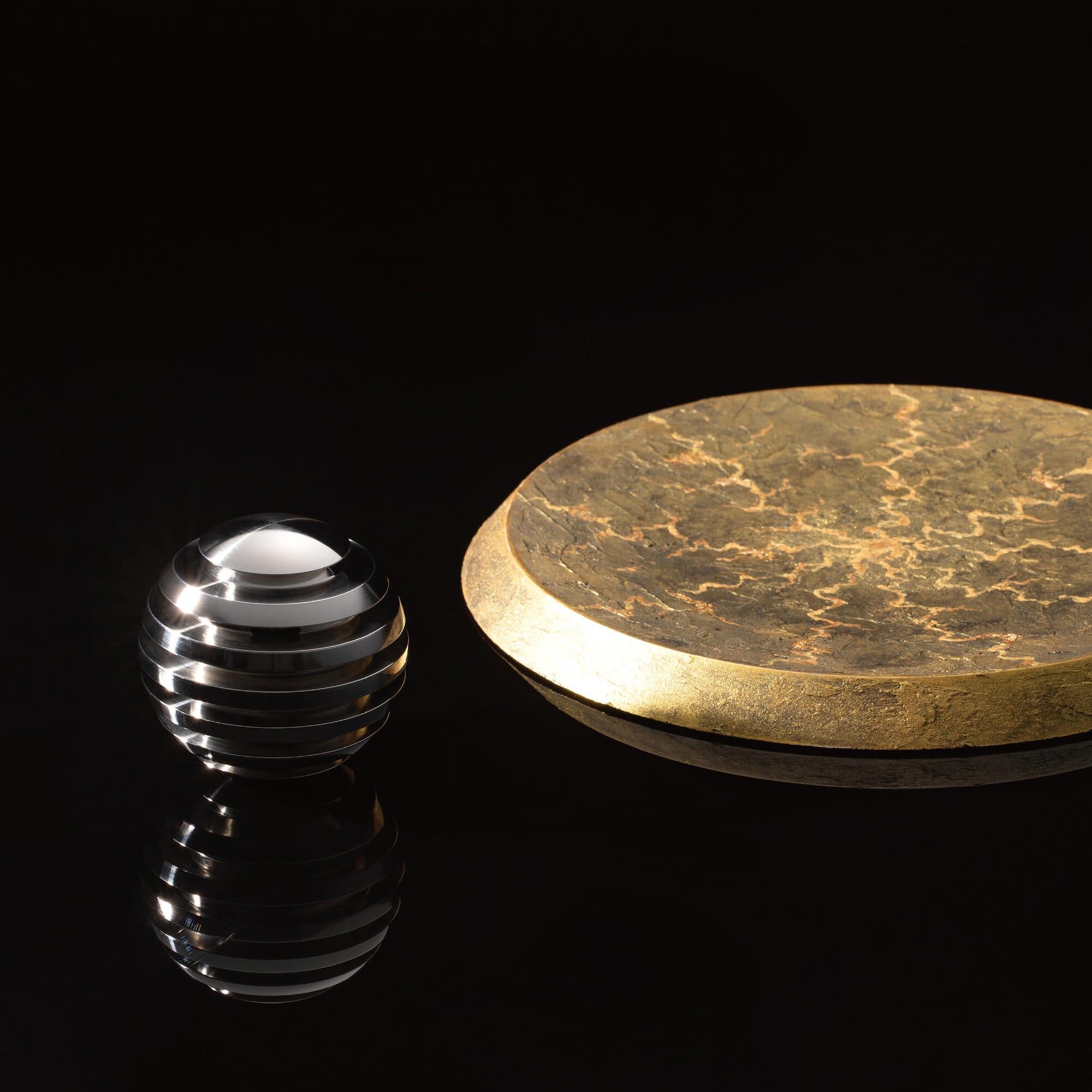 ステンレスの無垢材を削り出した神秘的な球体