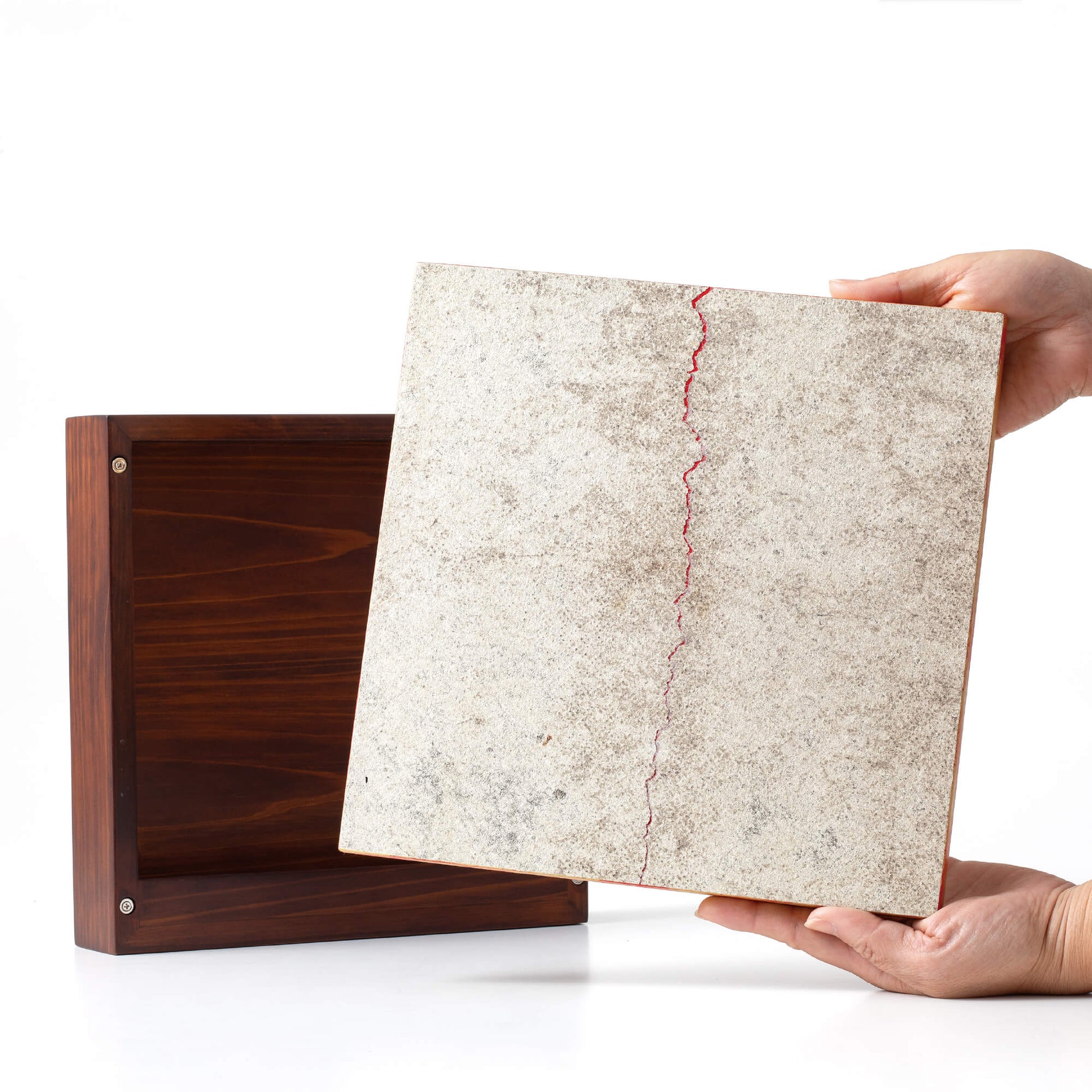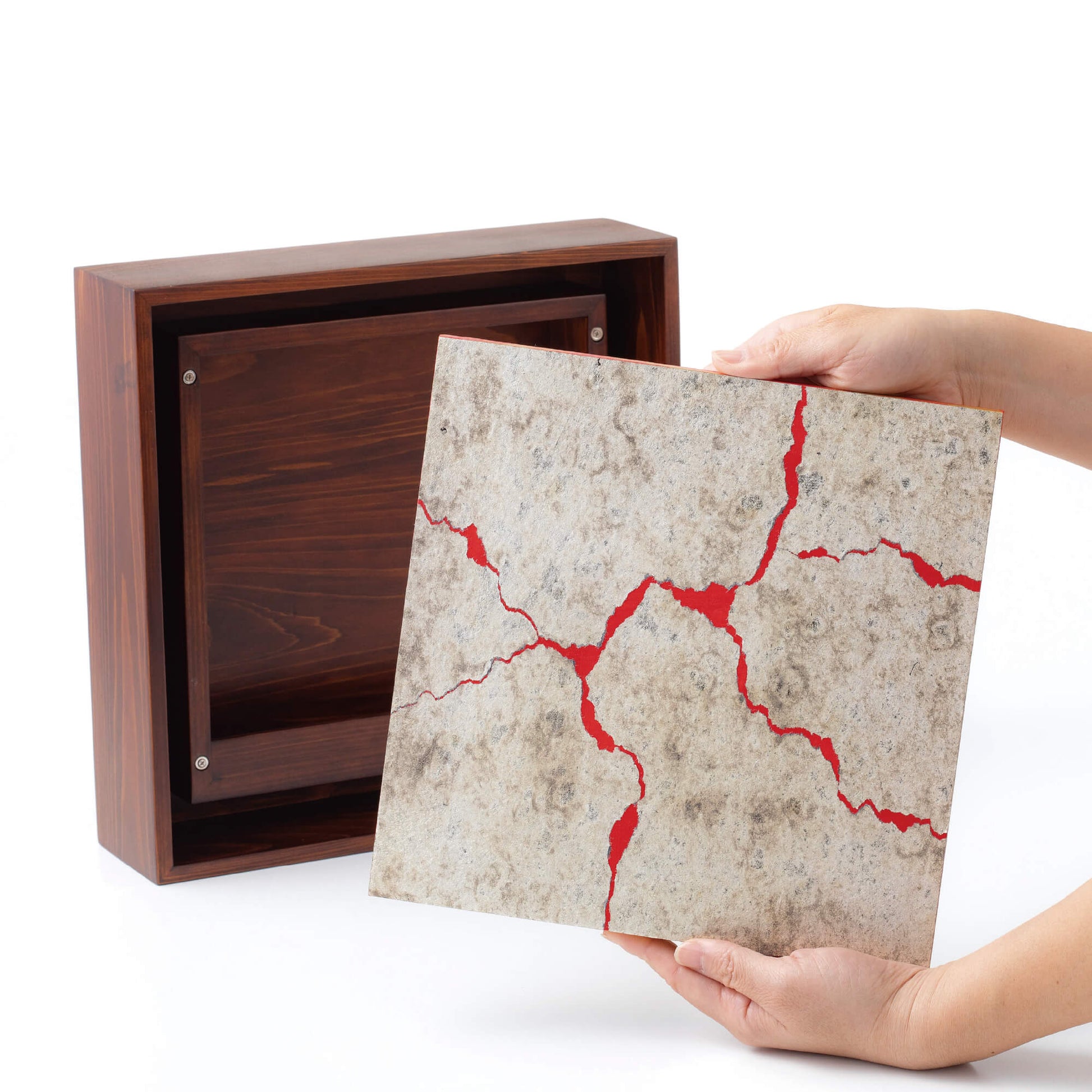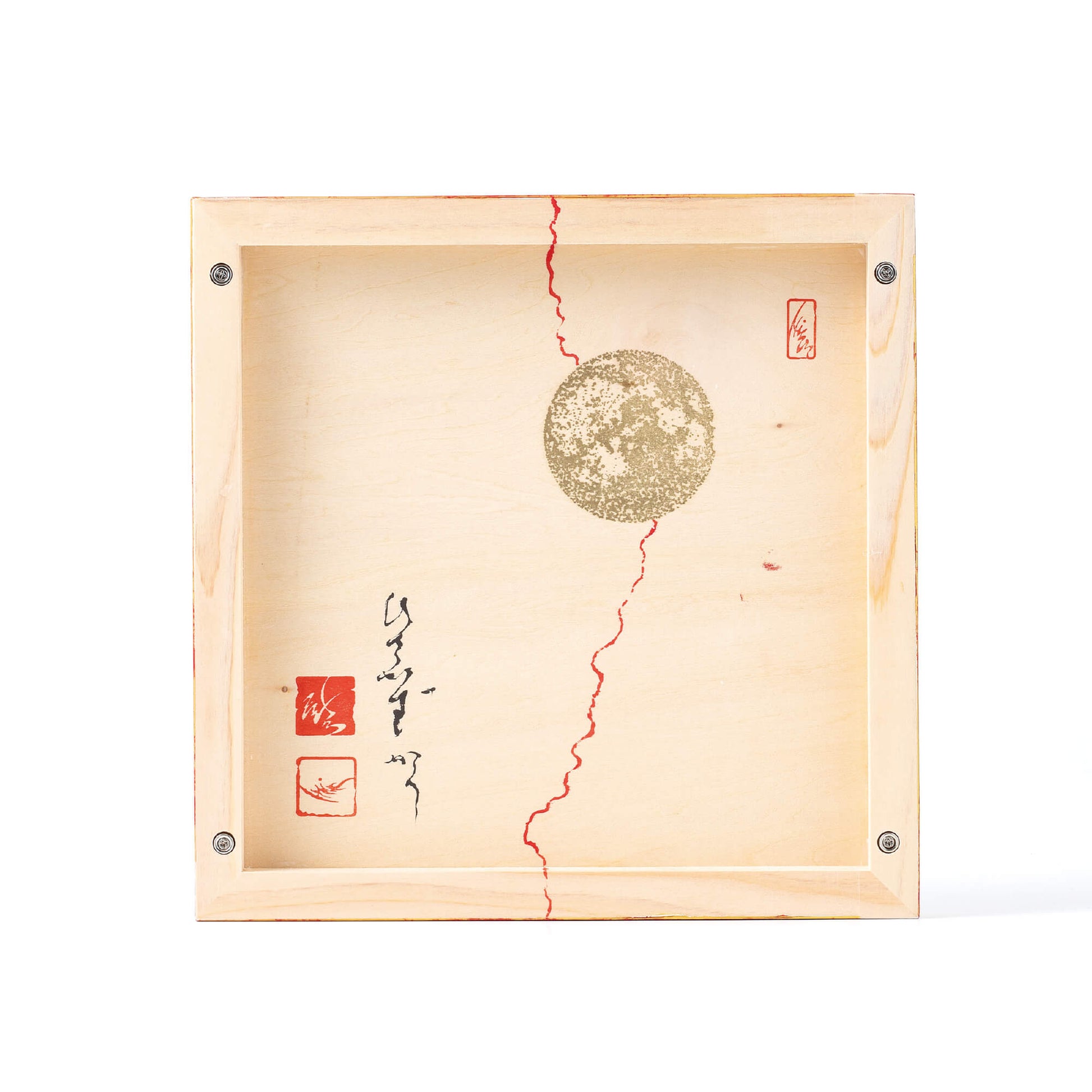内部に秘められた赤彩色は、体内や情熱、そして愛を映し出し、生命のエネルギーを象徴しています。その力は外枠へと広がり、やがて天へ、地へ、宇宙へと繋がっていきます。