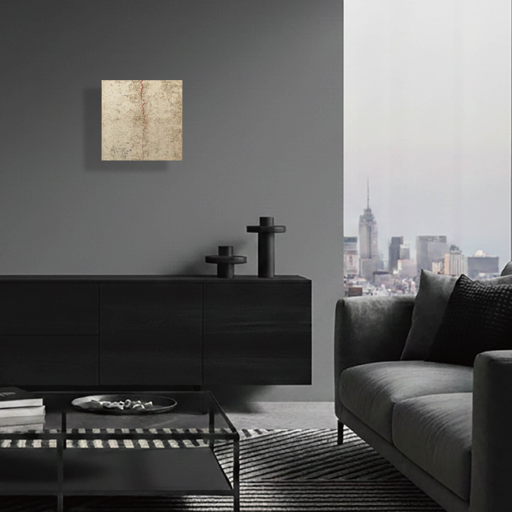 銀の柔らかな光沢は、侘び寂びの趣を漂わせ、時間の深みを感じさせます。その純銀和紙に刻まれたひび割れのラインは、誕生を象徴し、人生の軌跡や揺らぎ、そして新たな誕生や輪廻転生を思わせます。