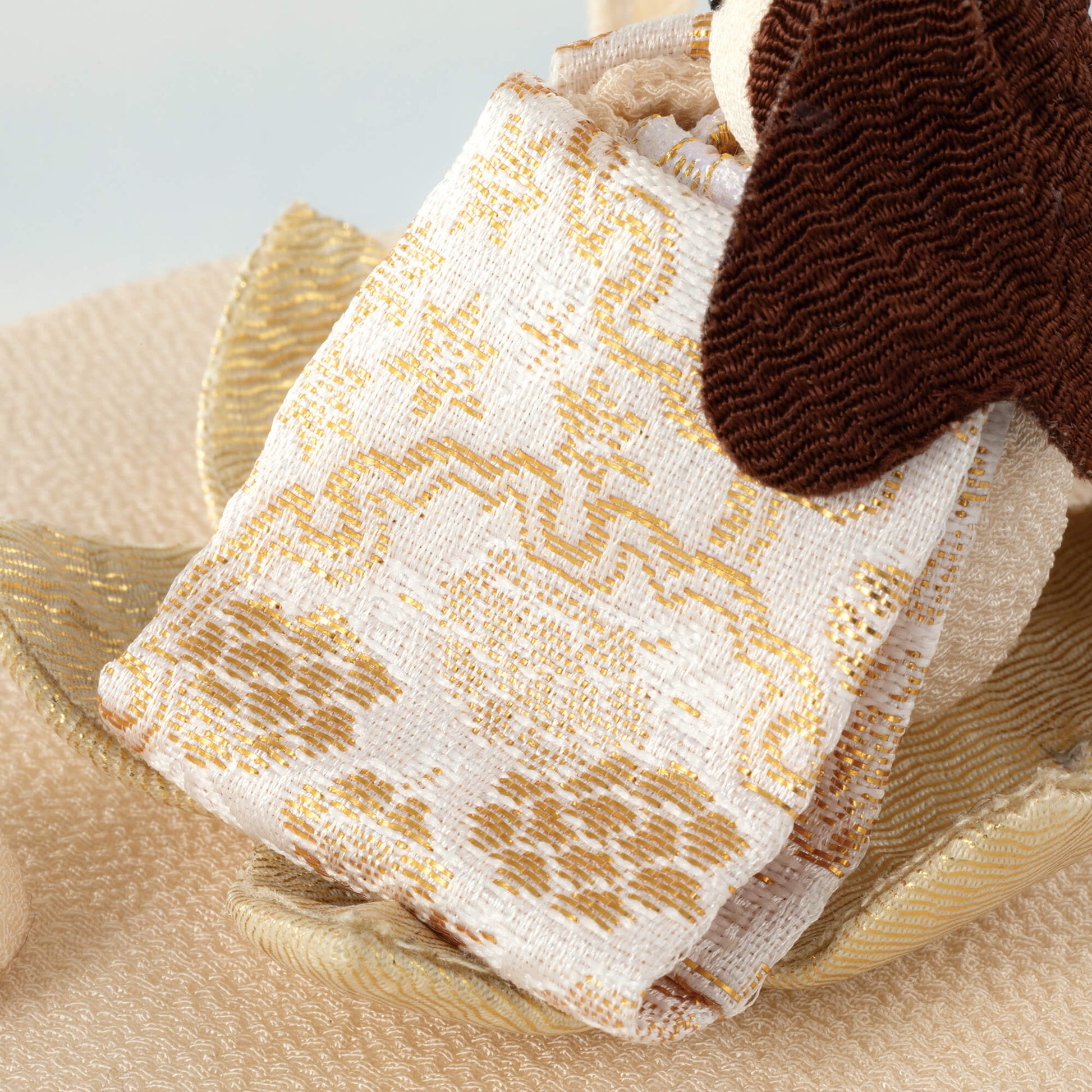 金襴の柄は、生地の取り方によって画像とは別のデザインに見えることがございますが、それこそがこの生地の魅力の一つです。どこをとっても美しい金襴柄がご覧いただけます。
