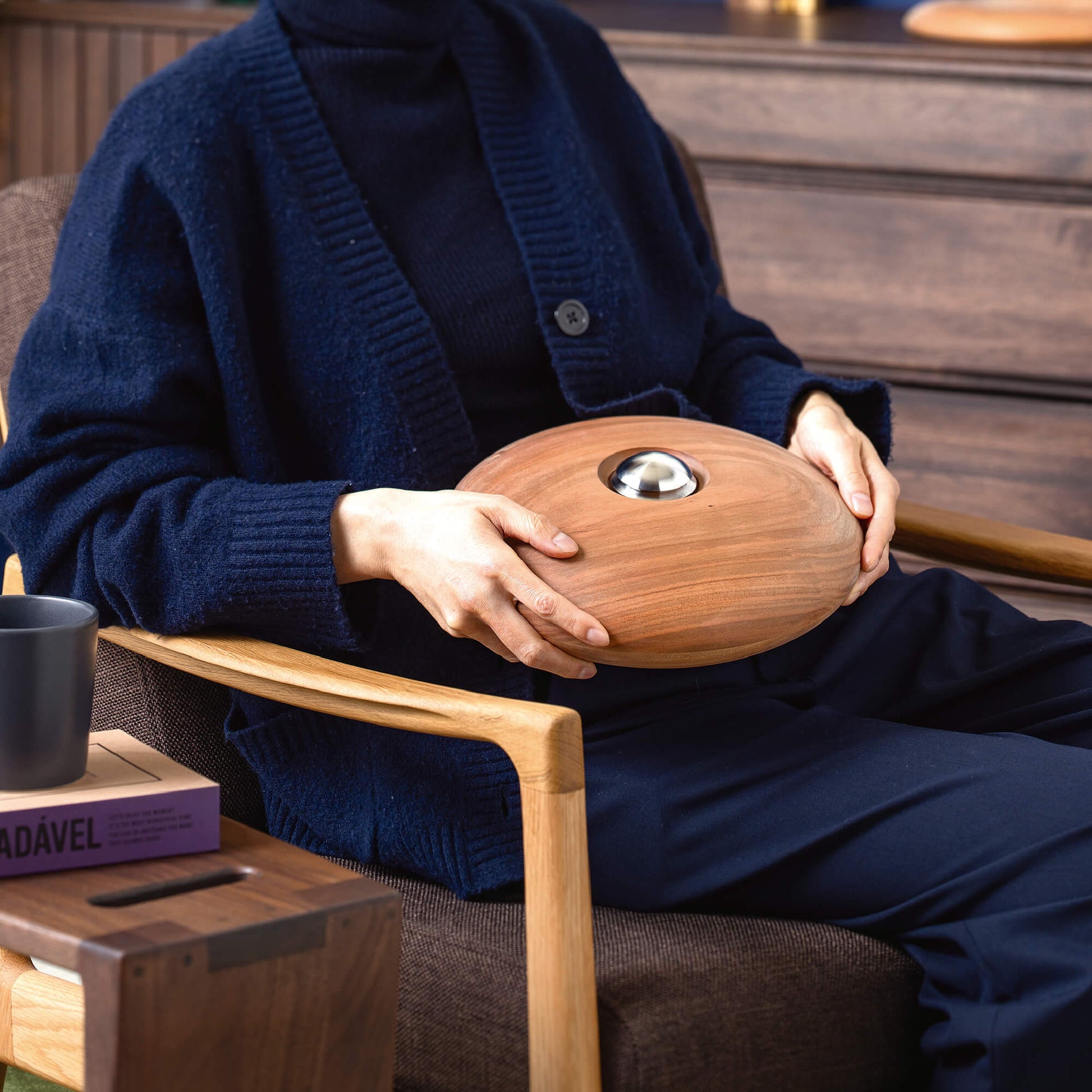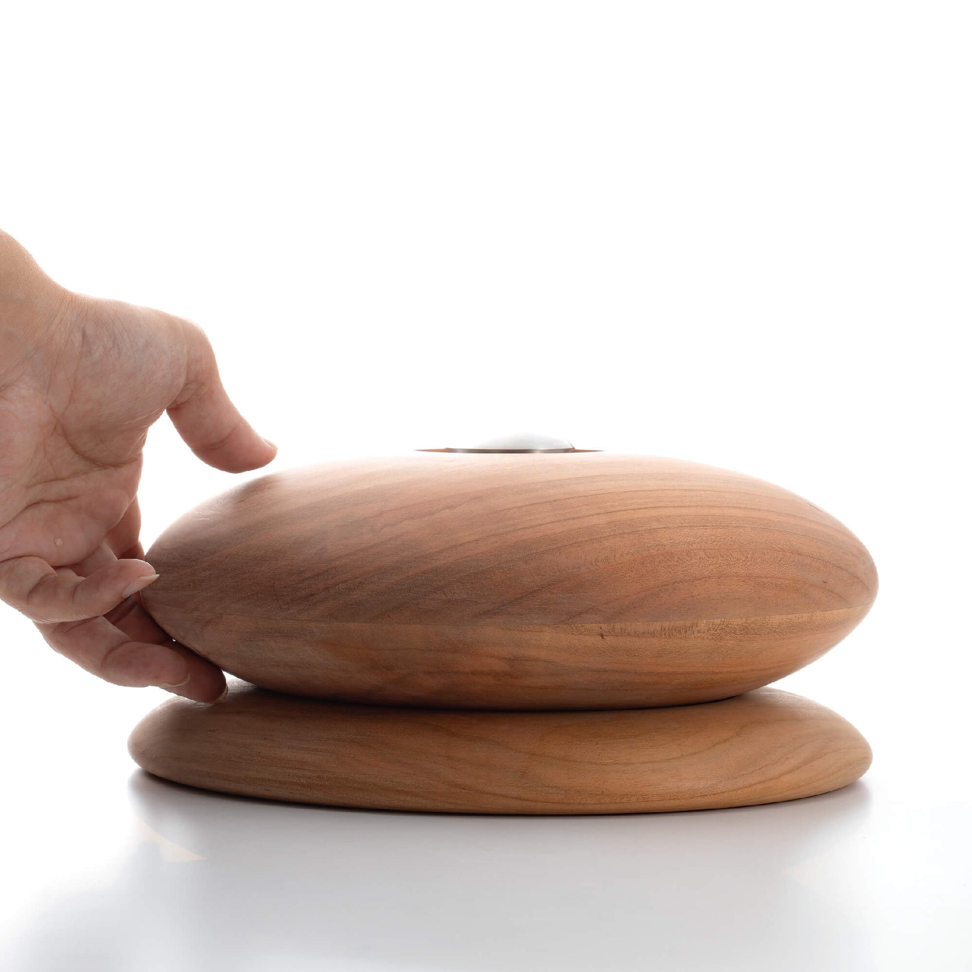台座部分も同じ桜材で仕上げられ、全体を持ち上げることができるため、手に取り、抱きしめるようにして故人の存在を身近に感じることができます。