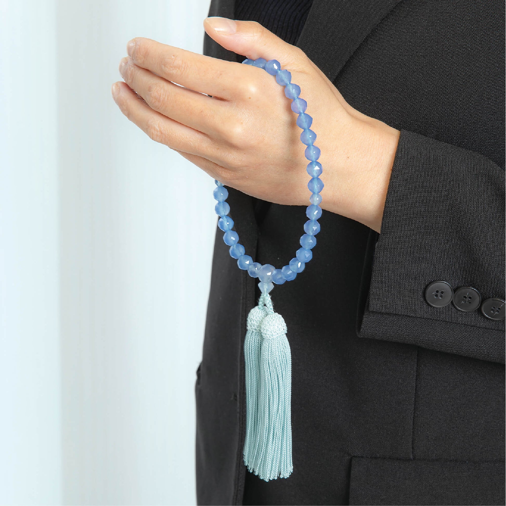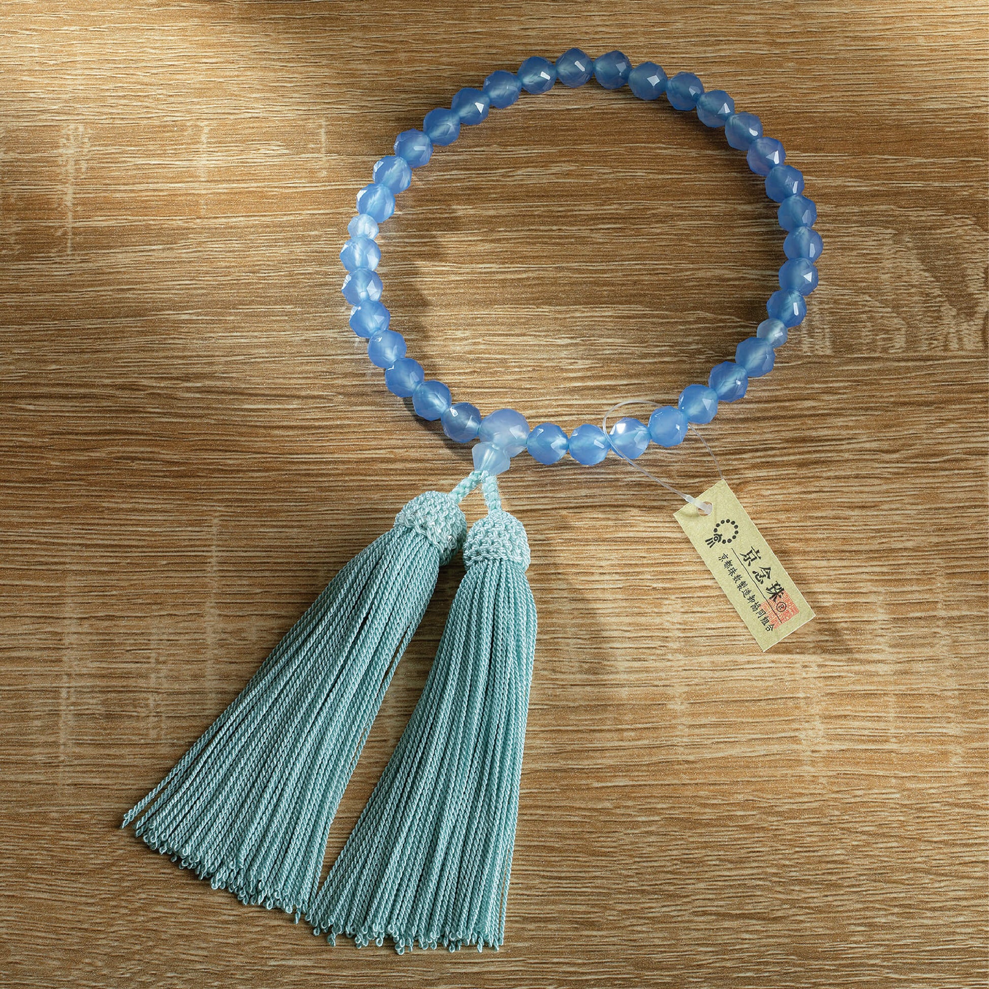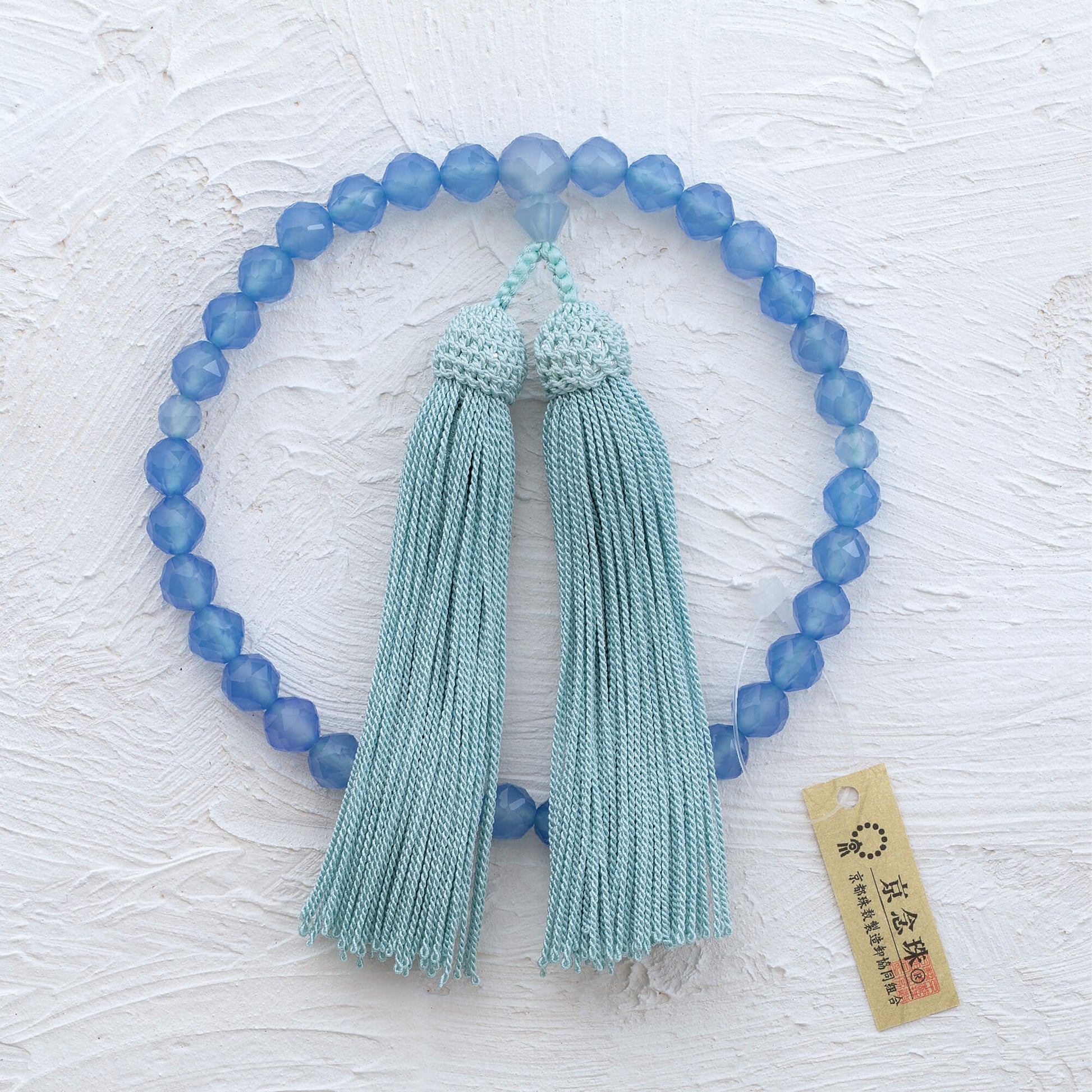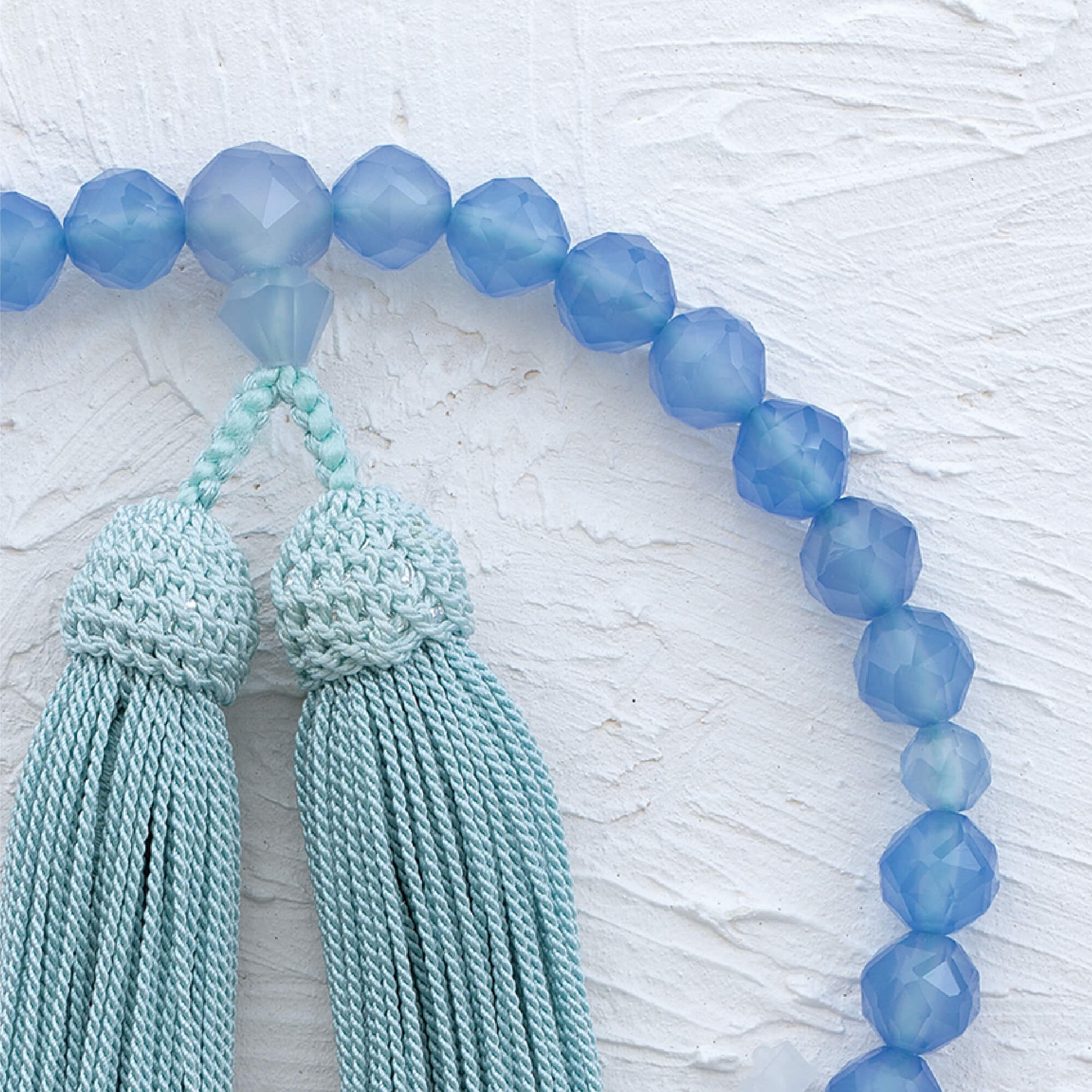 【念珠】ブルーカルセドニージュエリーカット 片手8mm 共仕立 本絹頭房 SN007