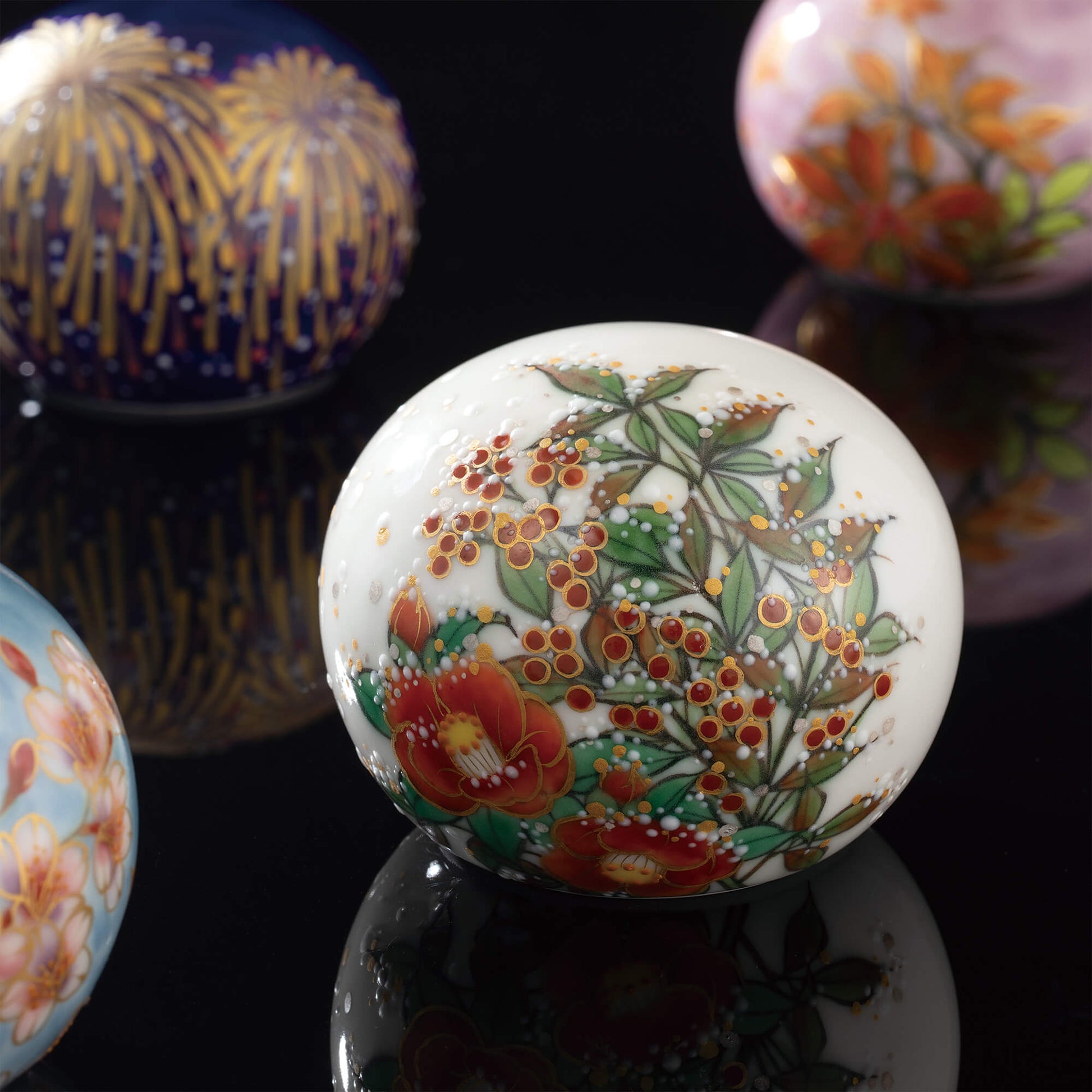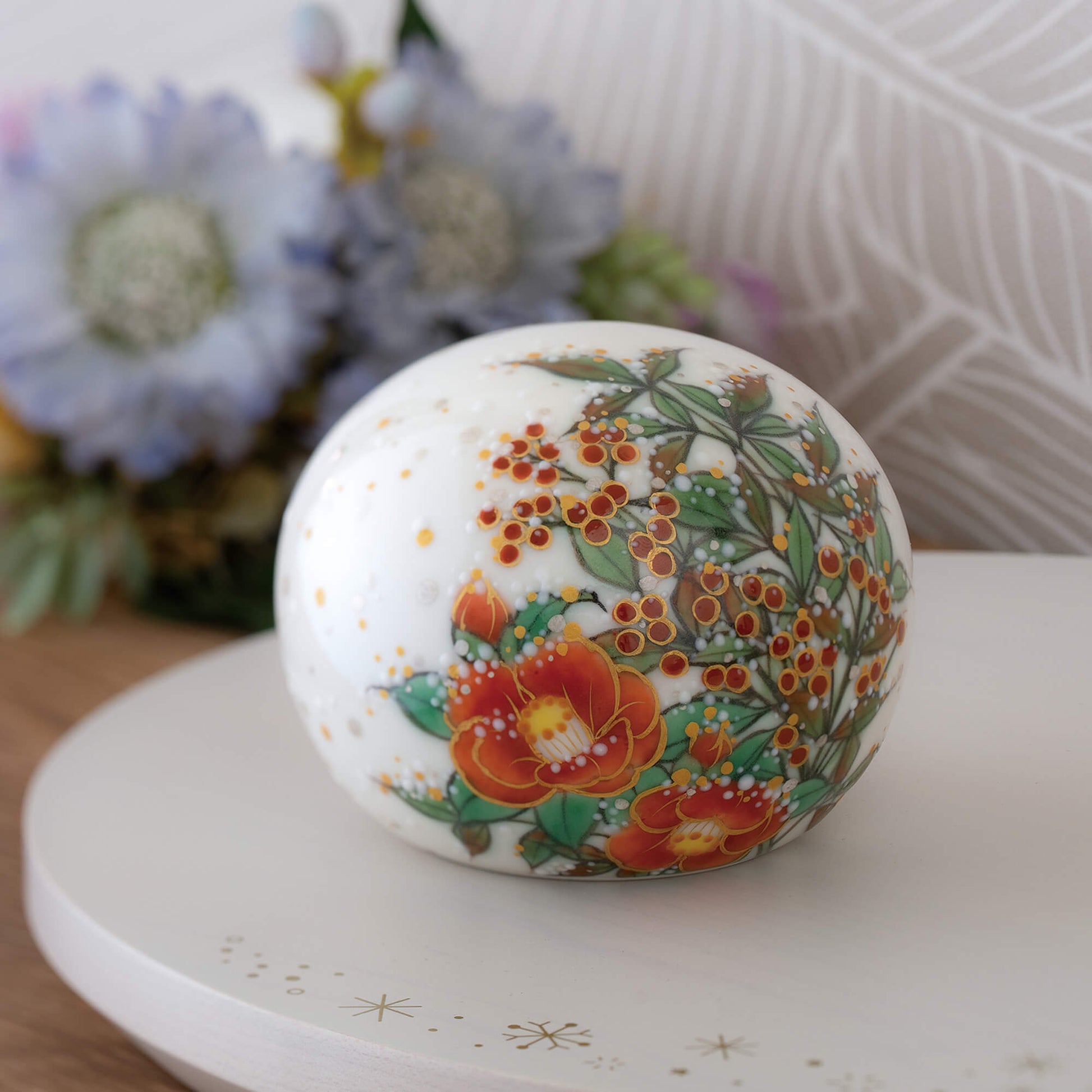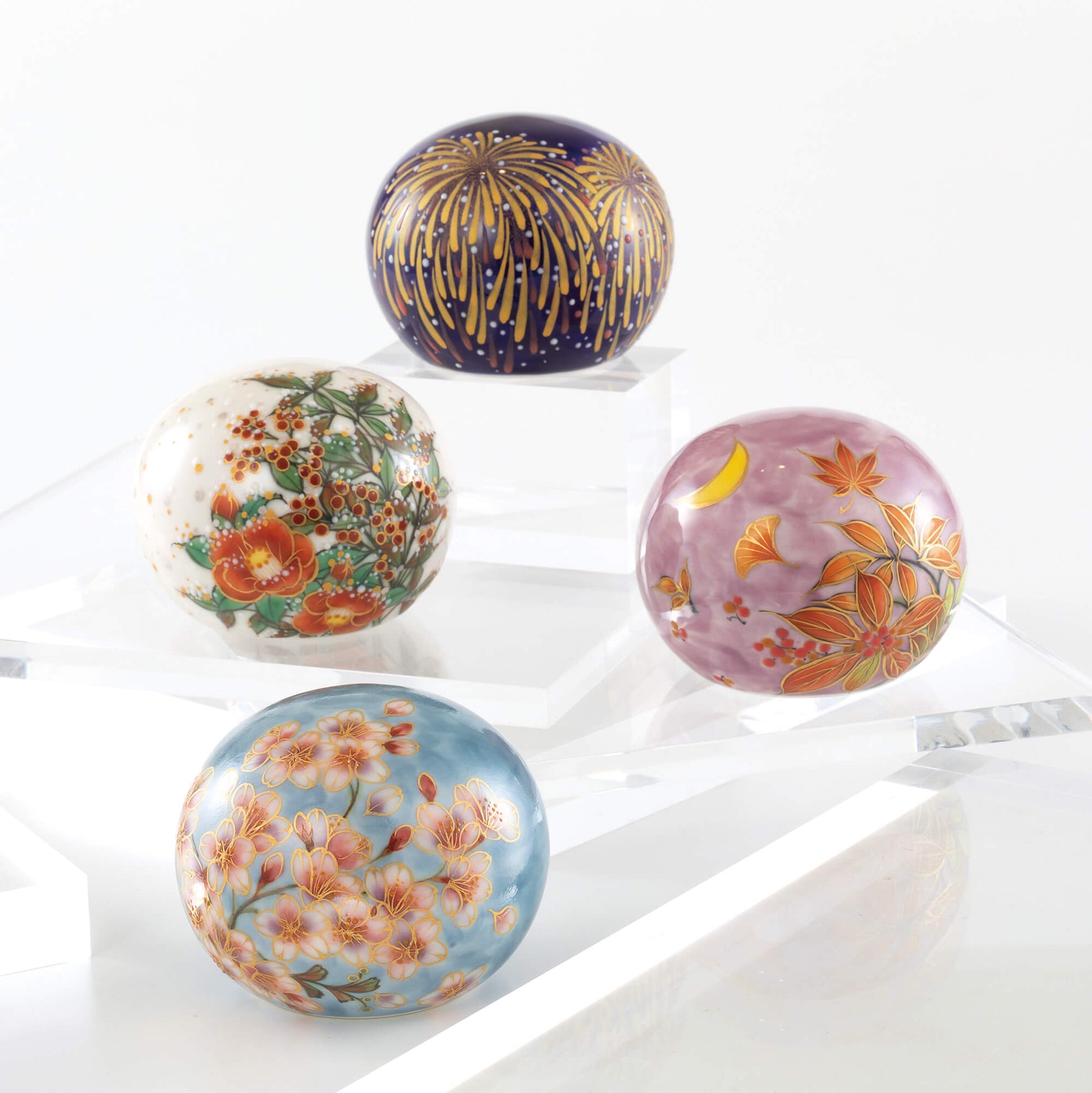 「たまいし」は、一級心理カウンセラーの資格を持つリンク弘子氏の深い経験に基づいて考案されました。ご家族と向き合うグリーフケアの現場から生まれたこの商品は、心のケアに新しい安心感をもたらします。両手で包み込める球形のデザインには、大切な方や故人さまへの思いが通じるようにとの願いが込められております。 絵柄のデザインは女性デザイナーによる四季の移ろいを表したオリジナルデザイン。製造は、大正11年創業の京焼・清水焼窯元「陶葊」にて、ひとつひとつ丁寧に手作りされております。