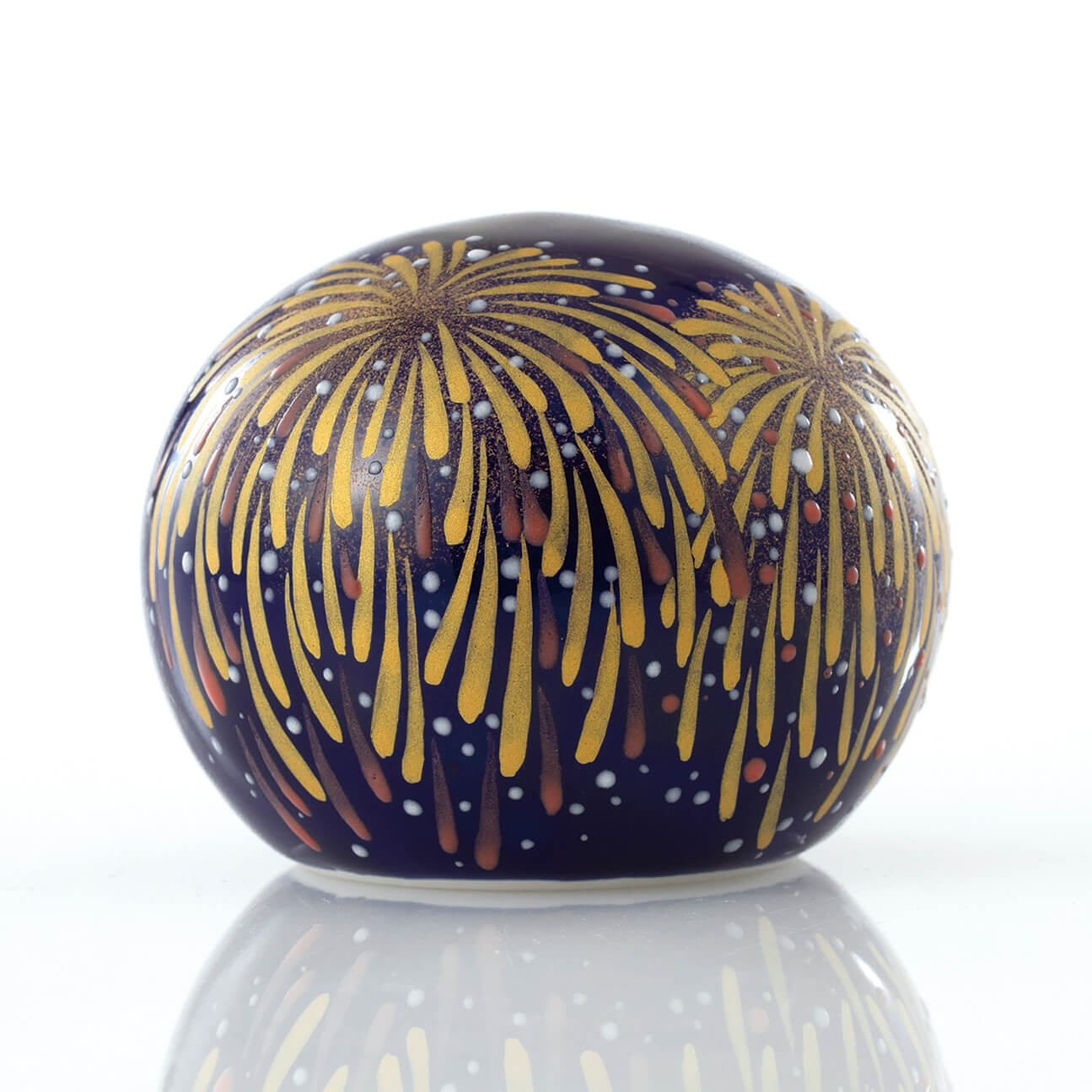夜空に広がる華やかな花火の儚い輝きを描き出し、花火を見た時の感動と夏の夜の特別なひとときを蘇らせます。舞い散る火の粉が立体的に表現され、手触りでもその美しさを感じられます。