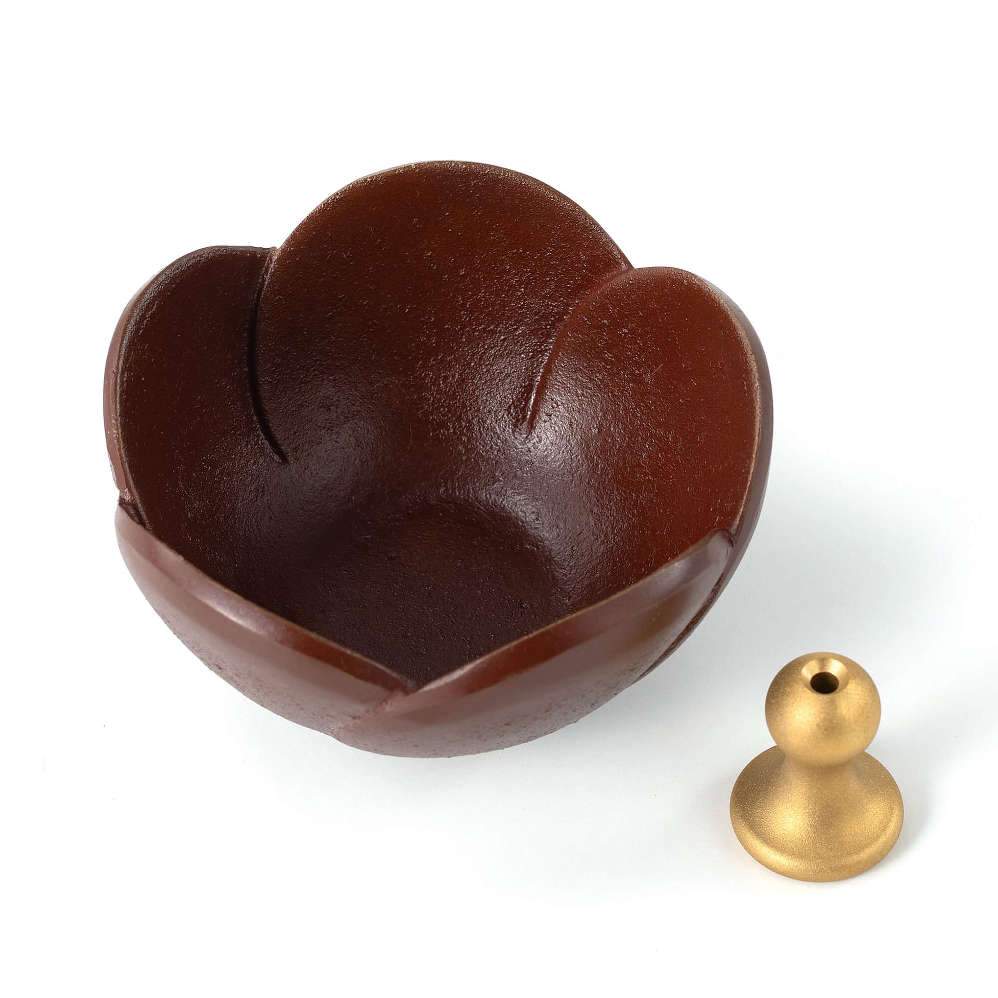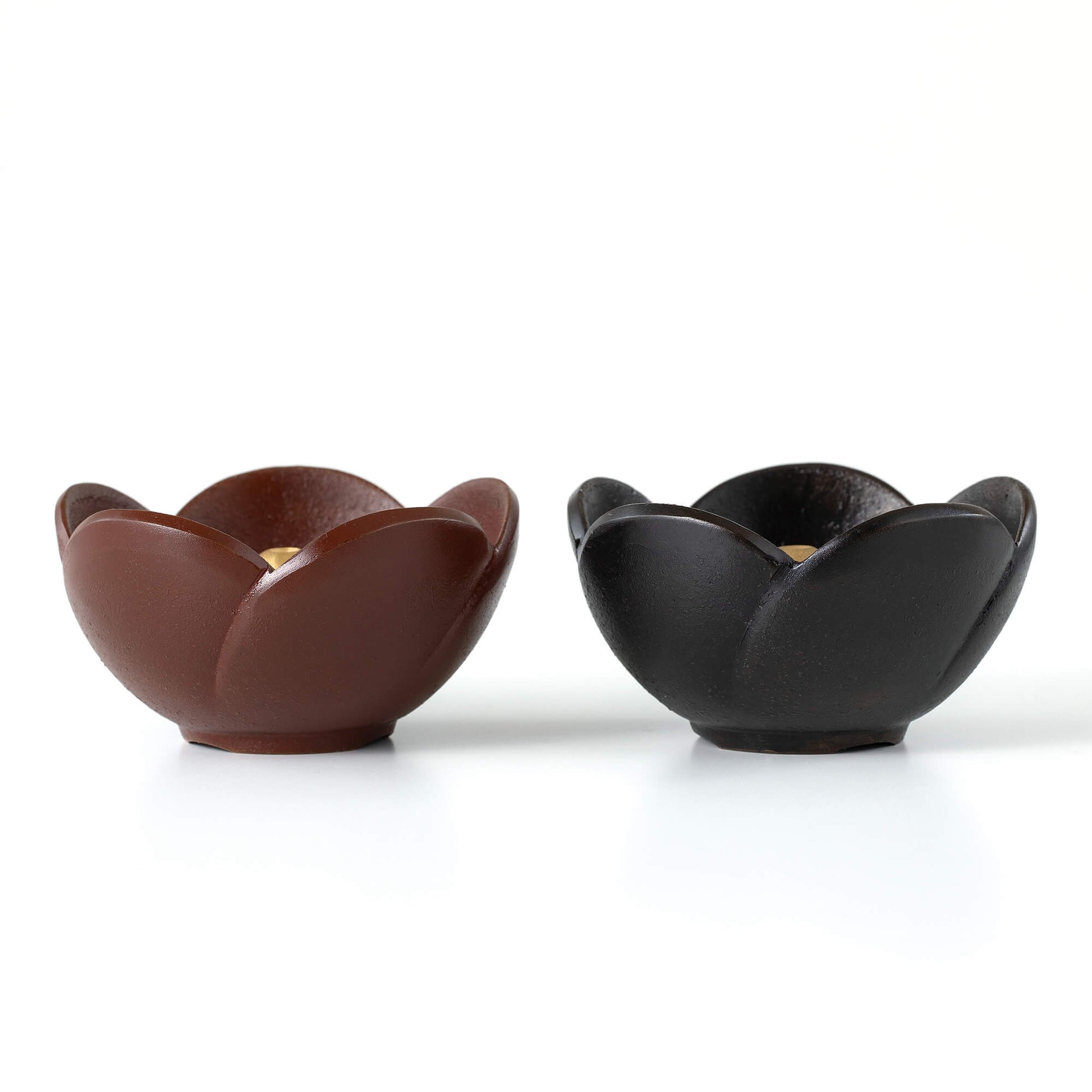 うめ香炉は、富山県高岡の職人によって丁寧に手作りされております。伝統的な鋳造法を用いて製造され、色付けにはこだわりのある伝統的な技法が採用されています。香炉には線香立てが付属しており、サイズ的にはカップローソクも設置できるため、燭台としてもご利用いただけます。 真鍮製であるため、長期間ご使用いただける上、水洗いも可能ですので、清潔に保つことができます。香炉石(別売)にアロマを垂らして香のお供えを行えば、火の心配もなく安心してご利用いただけます。 また、同シリーズの小さな燭台も併せてお使いいただけます。どうぞお気軽にお求めください。