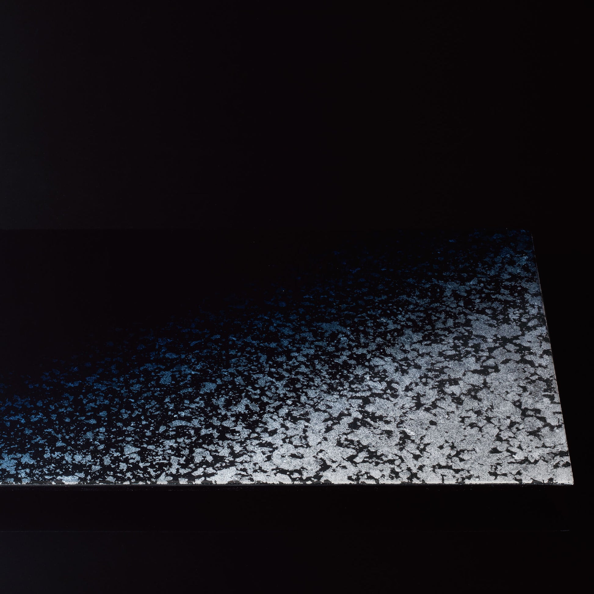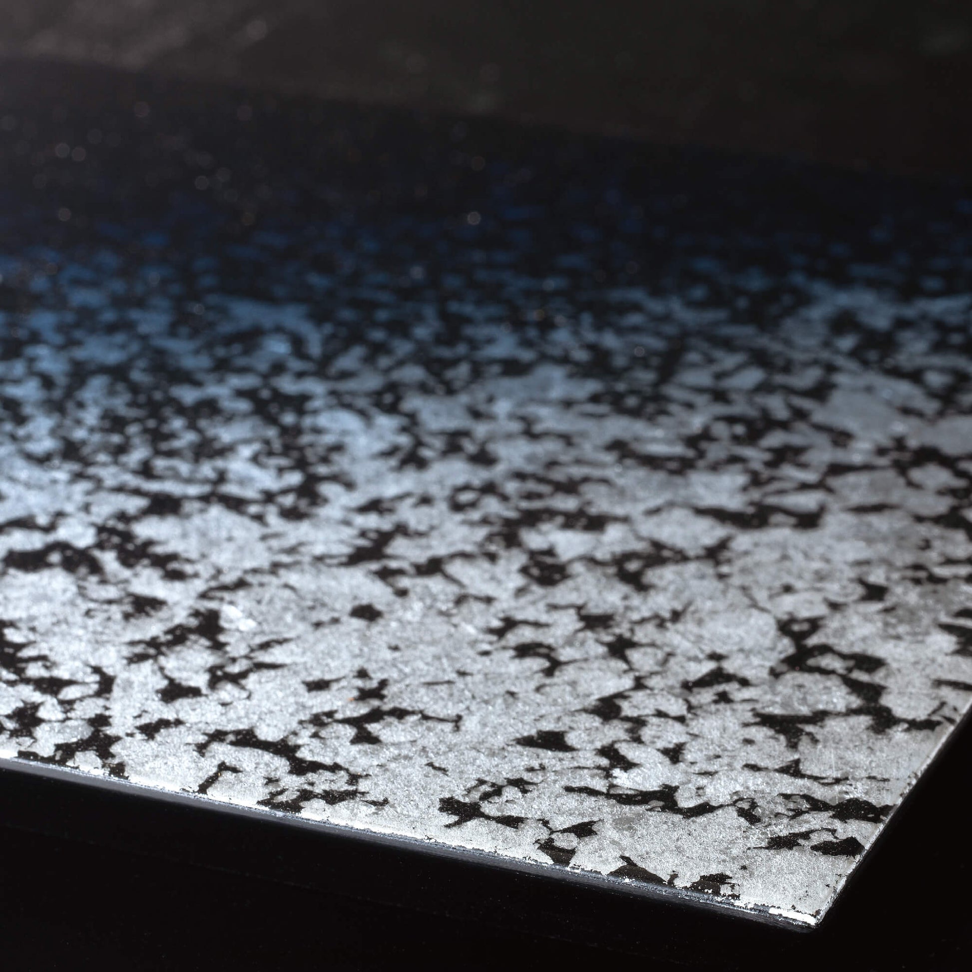 銀箔は、月のように静かで繊細な光。 この作品は、心を見つめ直し、自分と対話するための時間を象徴しています。 ひび割れが次第に静まり、透明な空間へと溶けていく様子は、 心のノイズが消え、心が穏やかになるよう願ったものです。