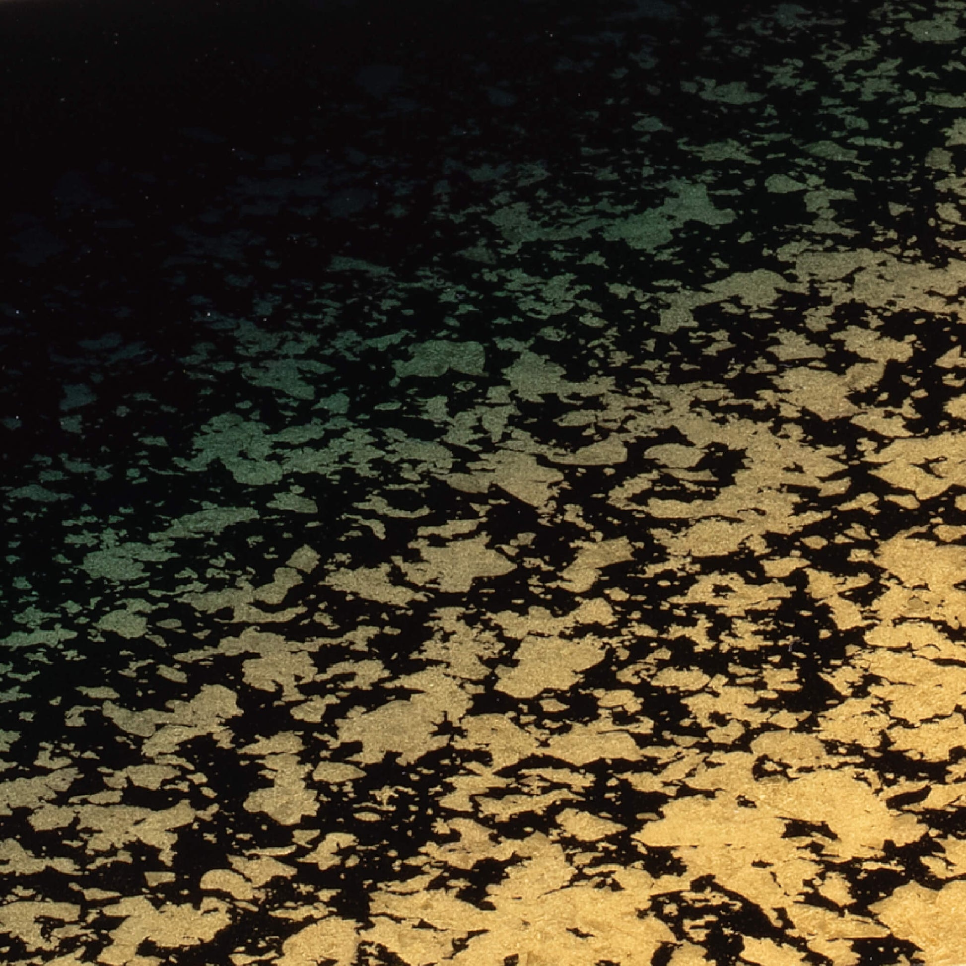 金箔は、太陽のような包容力と温かさを象徴しています。 荒々しいひび割れから始まり、やがて柔らかな輝きへと変化するこの一枚は、 悲しみを越えて再び歩き出す勇気を与えてくれる祈りのステージです。 グラデーションのひび割れは、「再生」そのものです。
