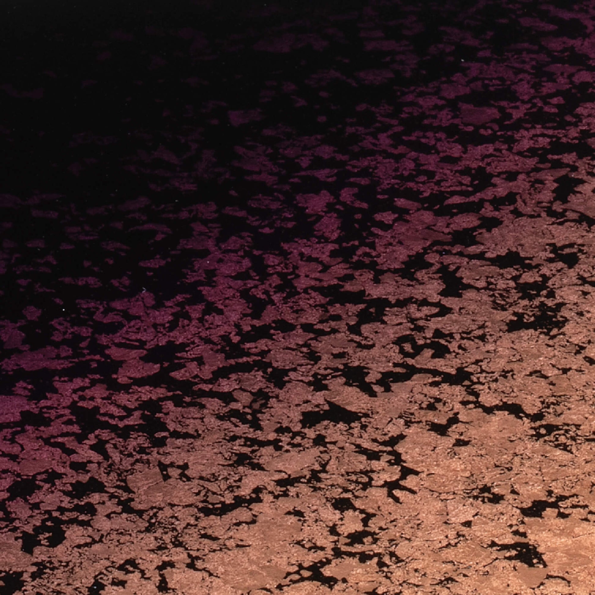 銅箔は、大地や根源とのつながり、記憶の重みを映し出します。 やや赤みを帯びた温もりある光は、過去を抱きしめながら生きていく力を与えてくれます。 ひび割れが生きた痕跡のように浮かび上がり、やがて消えていくその様子は、 私たちの中にある記憶と祈りが静かに昇華していく姿です。